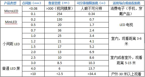 MiniLED 、 MicroLED及小间距对比  资料来源:各大调研平台整理