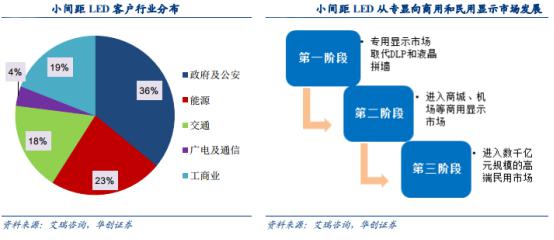 近年来,随着LED小间距显示技术的成熟,电影、广告、体育、 文娱在内多领域运营模式的革新将持续推动小间距景气度上行。虽然近几年小间距 LED 取得了快速发展,但是其应用领域至今还主要是在专业显示市场,其中政府、公安、能 源、交通等部门占据绝对份额。