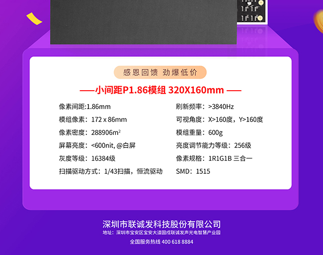多宝电竞小间距模组P1.86特点: